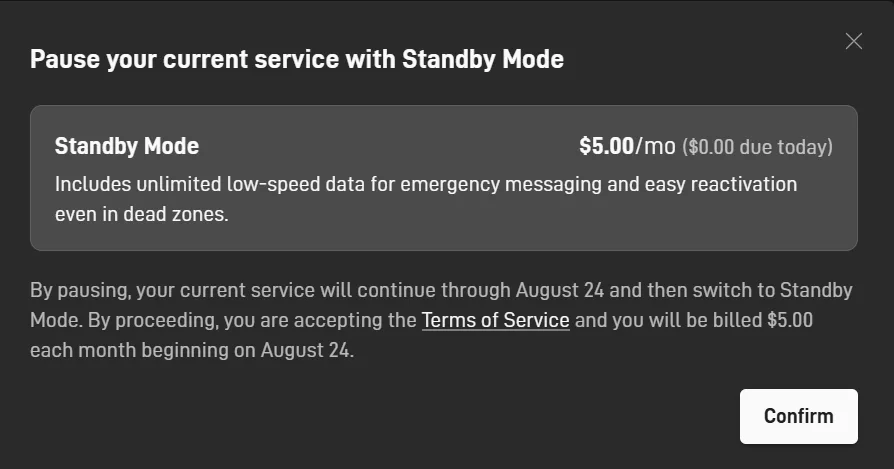 Starlink “pauses” the pause option for Roam customers in favor of a low-speed Standby Mode for both Roam and Residential customers.