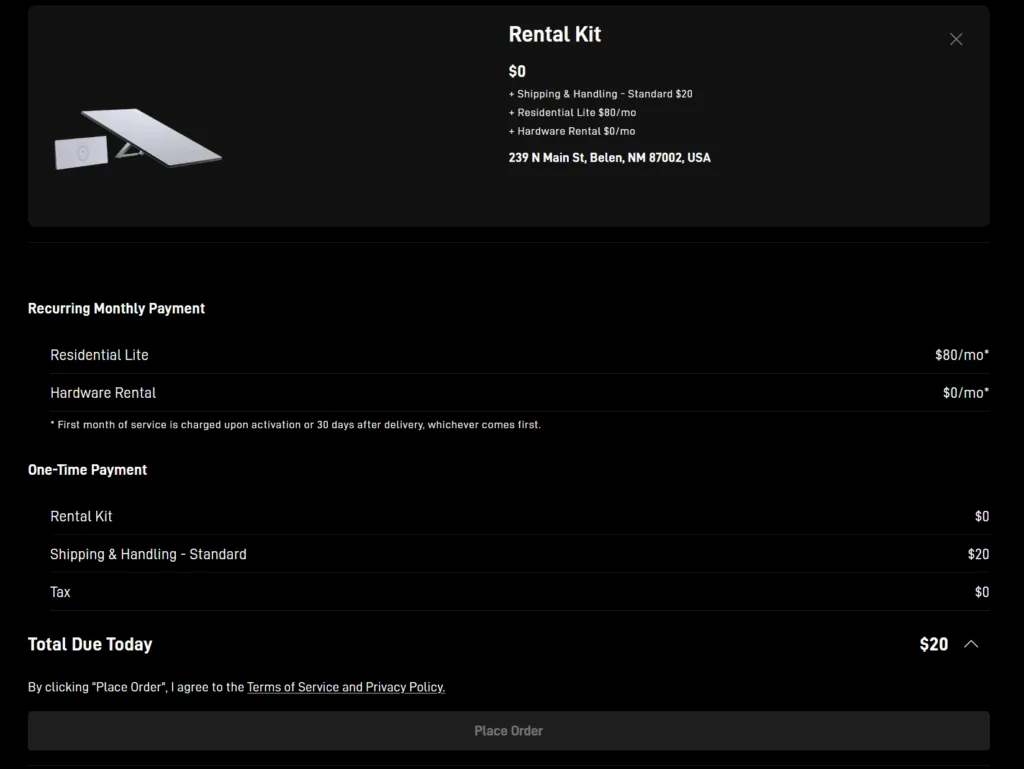 Like many of Starlink’s recent deals, the rental plan is only available in designated regions with excess capacity. Starlink doesn’t give exact locations for where the rental option is available, but it’s likely within the Regional Discount area. When ordering from outside the discount area, the rental option isn’t available, and you may be subject to paying a congestion charge of up to $1,000. You need to input your address and see if the rental option is available at checkout.